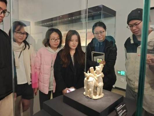 红色研学之余,大家还走进“江西古代陶瓷文化展”展区开展研学体验。从远古先民的文明遗存到商周青铜的精湛工艺,从唐宋陶瓷的璀璨风华到历代文化的传承积淀,赣鄱大地深厚的历史底蕴与独特的文化魅力扑面而来。同学们紧跟讲解节奏,细致了解展品背后的历史渊源与文化内涵,在触摸历史脉络、感受文明温度中,进一步提升文化认同感与民族自豪感。参观完江西古代陶瓷文化展之后,全体人员在博物馆大厅集合,大家分享参观感悟,结合红色革命精神与赣鄱文化内涵,畅谈学习收获与成长思考,现场交流氛围浓厚。